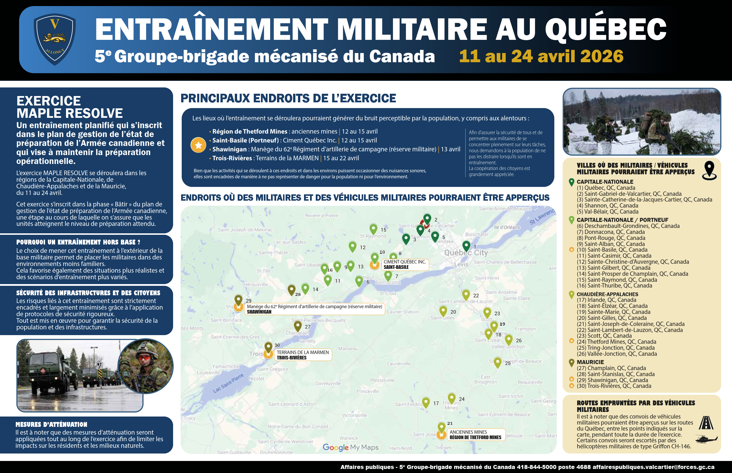 Information : Exercice militaire d'envergure au Québec, du 11 au 24 avril 2026