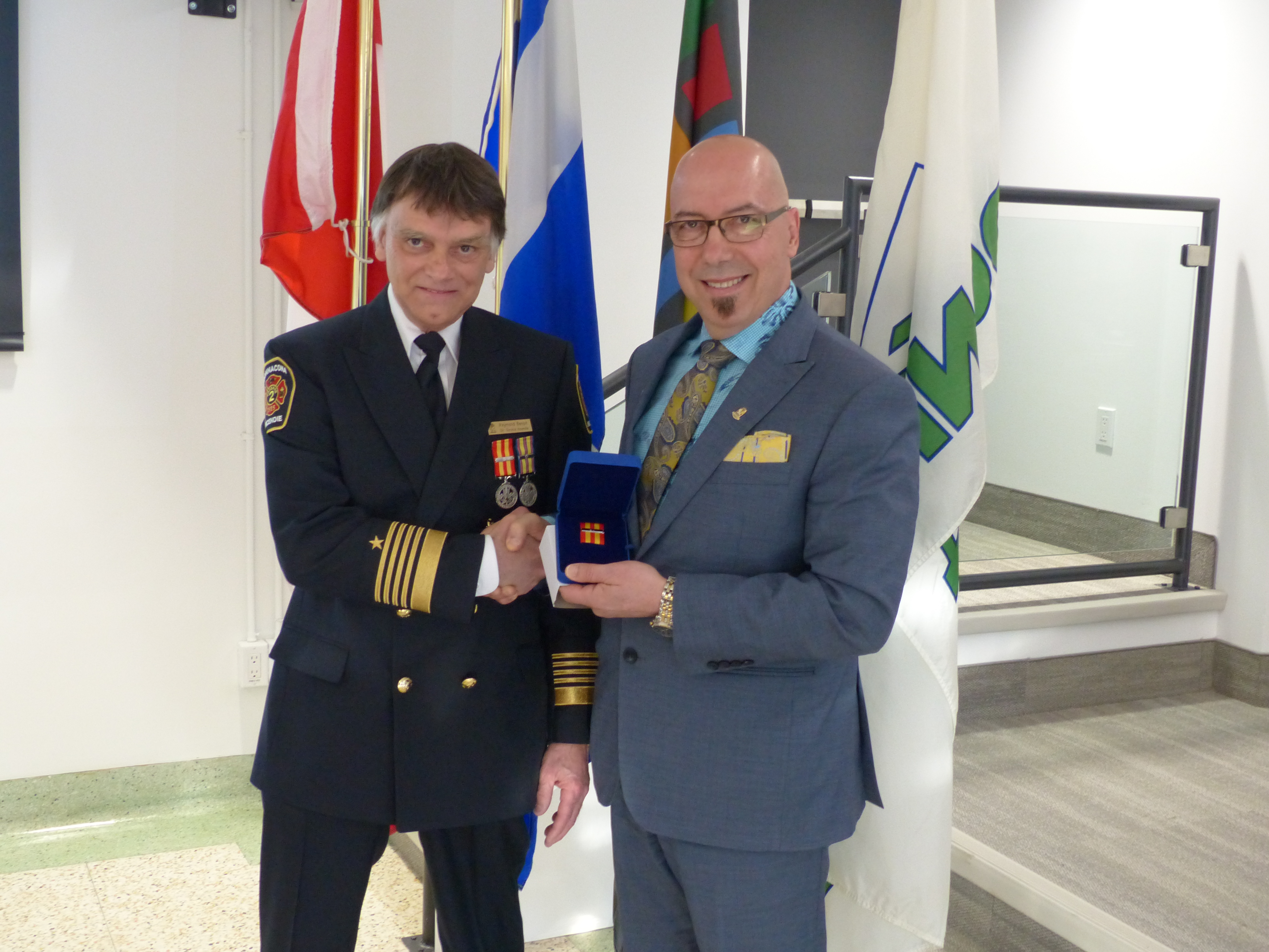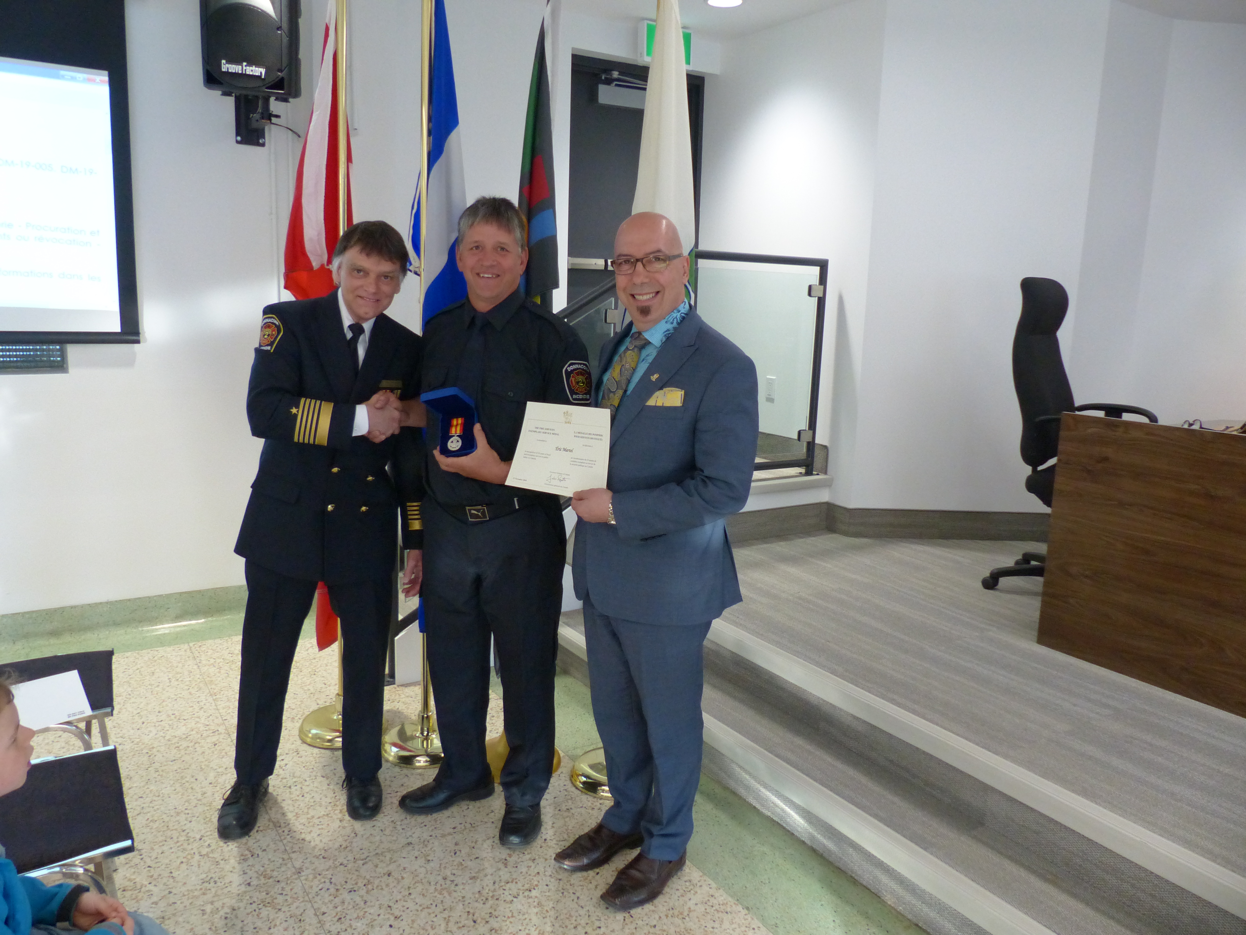 Ajoutons que lors de la séance publique du 27 mai dernier, deux pompiers ont reçu une médaille décoration, pour distinction honorifique, du lieutenant-gouverneur du Canada afin de souligner leurs années de service : 40 ans pour M. Raymond Benoit et 20 ans pour M. Éric Martel.