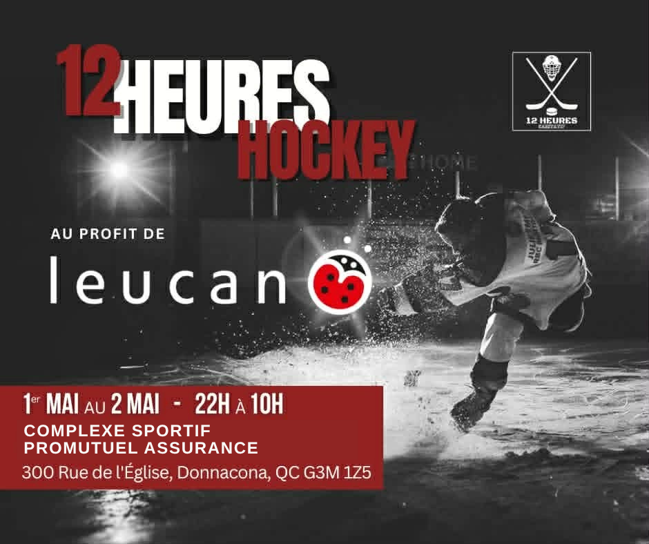Rejoignez-nous pour une 3e édition du 12h de hockey caritatif, cette année au profit de Leucan.
